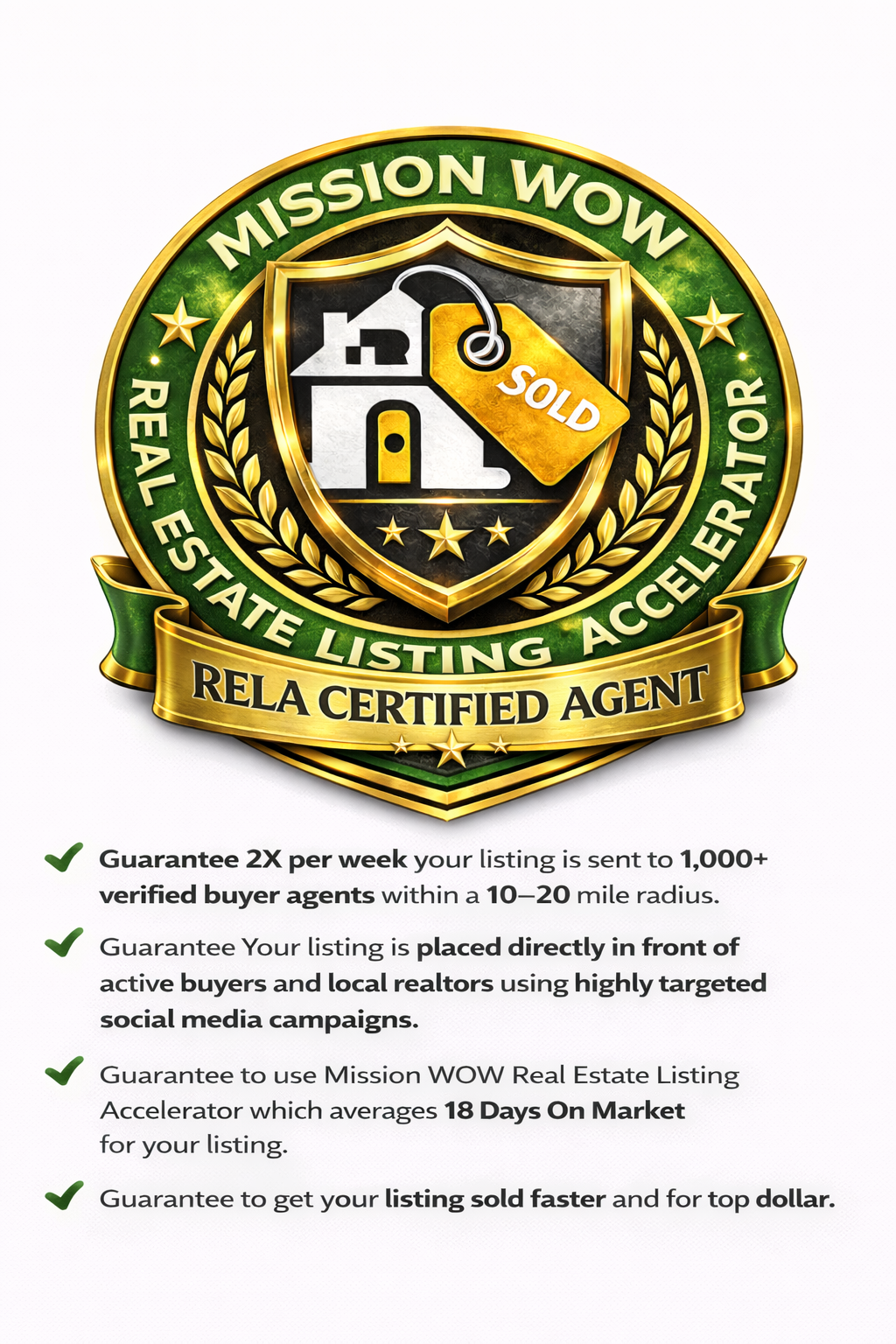 Mission WOW’s Real Estate Listing Acceleration (RELA) Certification gives agents a proven system to generate buyer demand, sell listings faster, and win more listing appointments — without cutting the price.