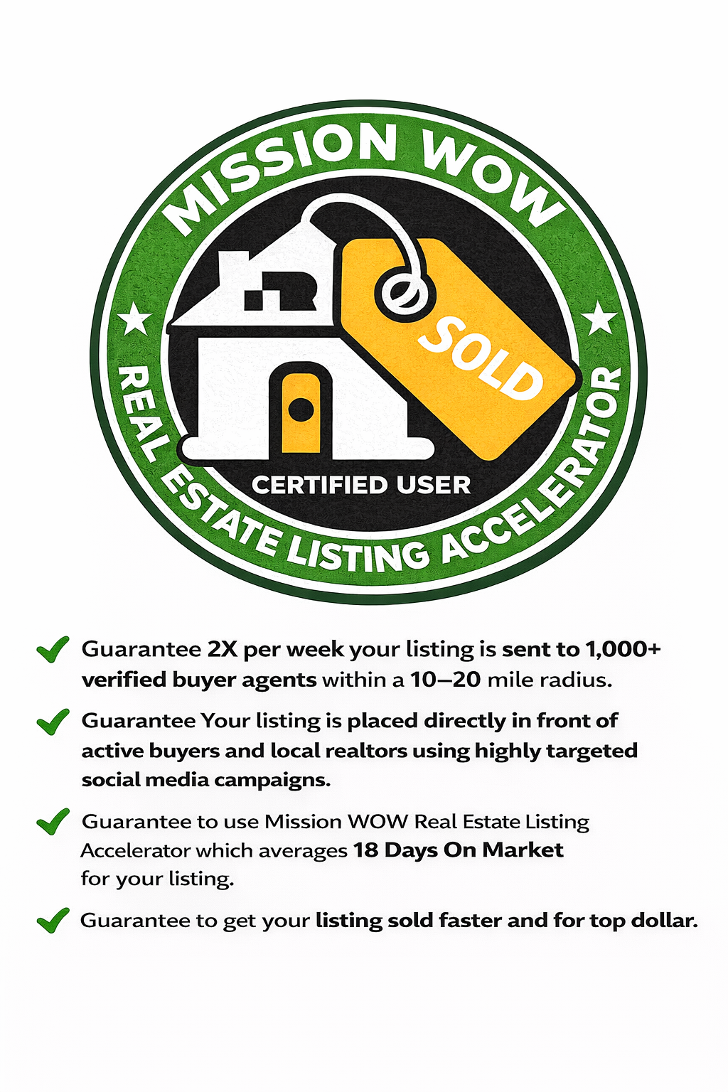 Imagine telling a seller: “Most agents reduce the price when a listing sits. I use the Mission WOW Real Estate Listing Accelerator.”